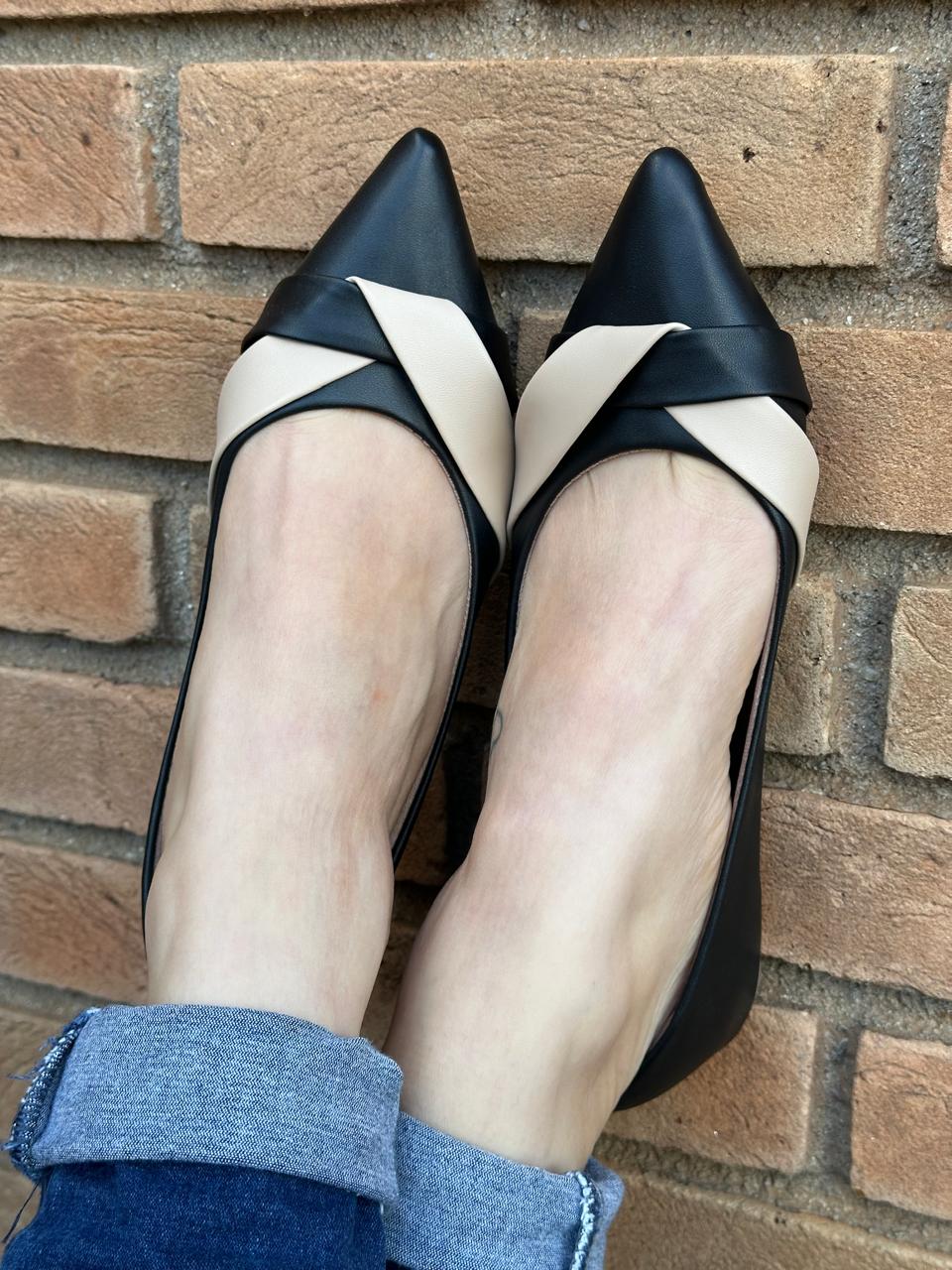 Sapatilha Bico Fino Fitada Preta/Nude