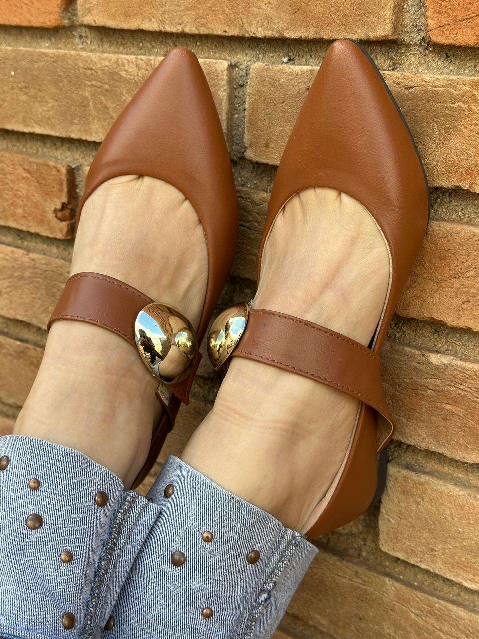 Sapatilha Bico Fino Fivela Oval Arez Caramelo