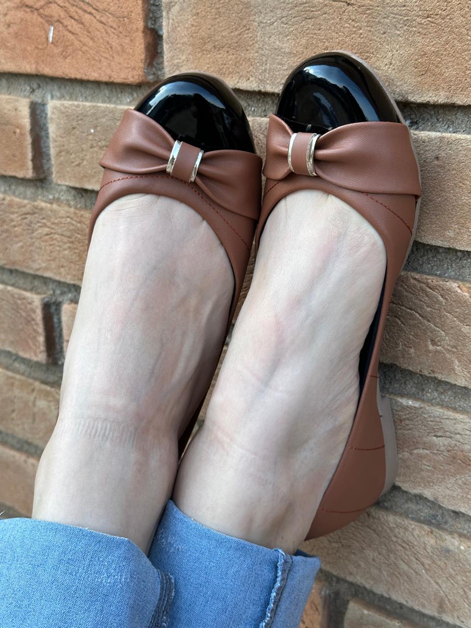 Sapatilha Redonda Comfort Capadócia Caramelo Ponteira Preta
