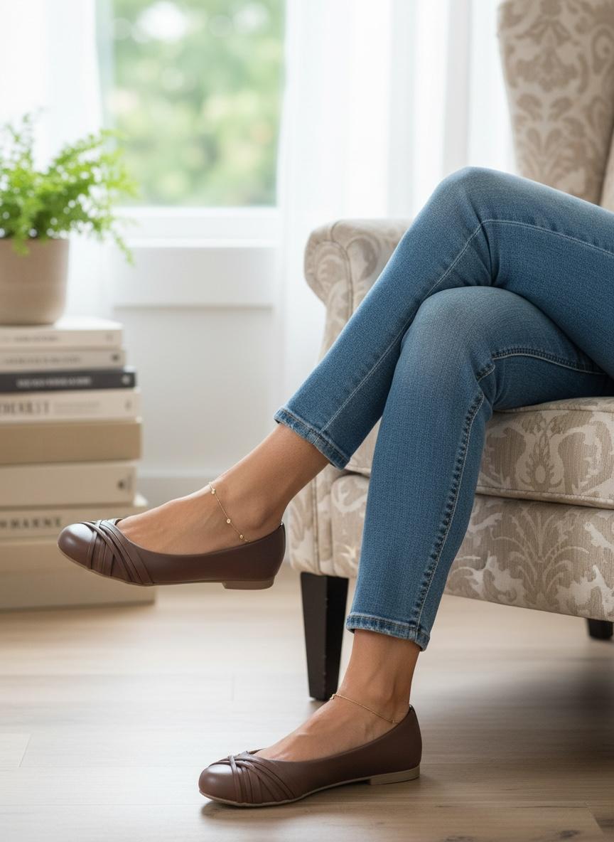 Sapatilha Comfort Redonda Tiras Café
